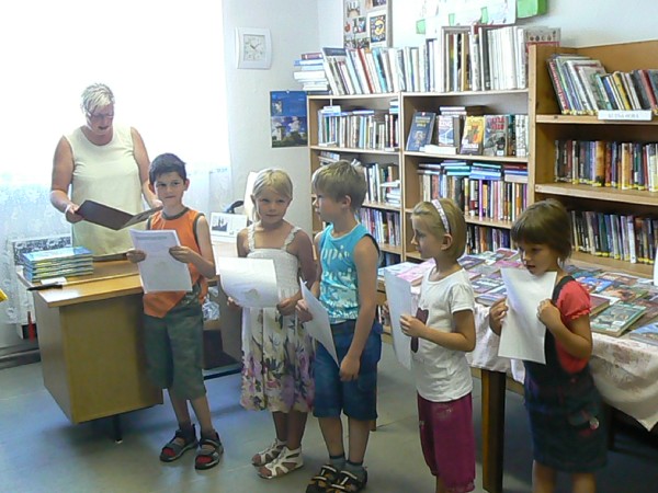 Ve středu 29.6.2011 proběhlo v místní knihovně první slavnostní Pasování prvňáčků na čtenáře. Letos předstoupilo k tomuto aktu 5 dětí: Libor Hehl, Adéla Müllerová, Pavel Pikhart, Andrea Ptáčková a Nikola Vondrysová. Po několika úvodních slovech pohádkové babičky Boženky předstoupili prvňáčci před rytíře Knihomila, který přednesl pasovací řeč a slavnostně děti pasoval mečem na čtenáře. Libor Hehl přečetl slib, který po té všichni nově pasovaní čtenáři stvrdili svým podpisem. Milou upomínkou na tento den bude pro děti pamětní list a kniha s věnováním, kterou si přebíraly z rukou pohádkové babičky.
